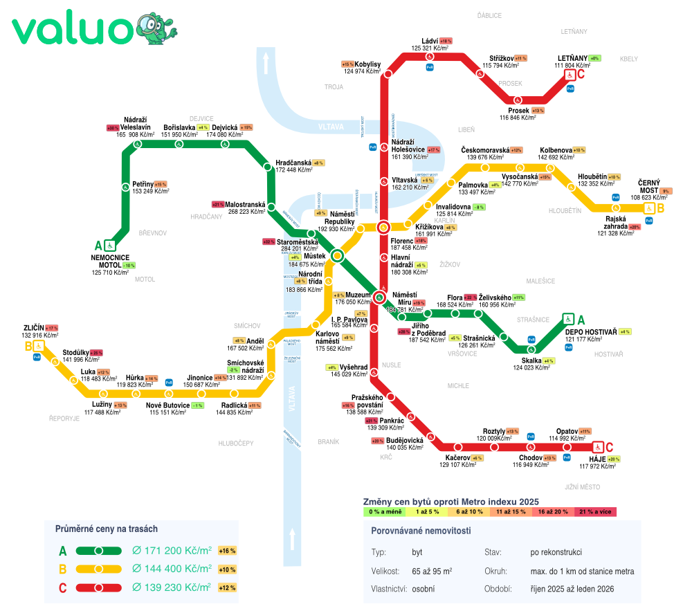 Ceny u stanic metra vzrostly o 14 %, rozdíly mezi lokalitami se prohlubují